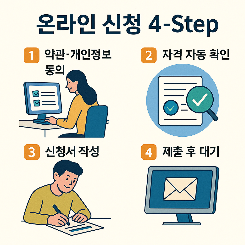 | ④ 제출 후 대기 | 문자·메일 안내 | 선정 결과 확인까지 약 2주 |