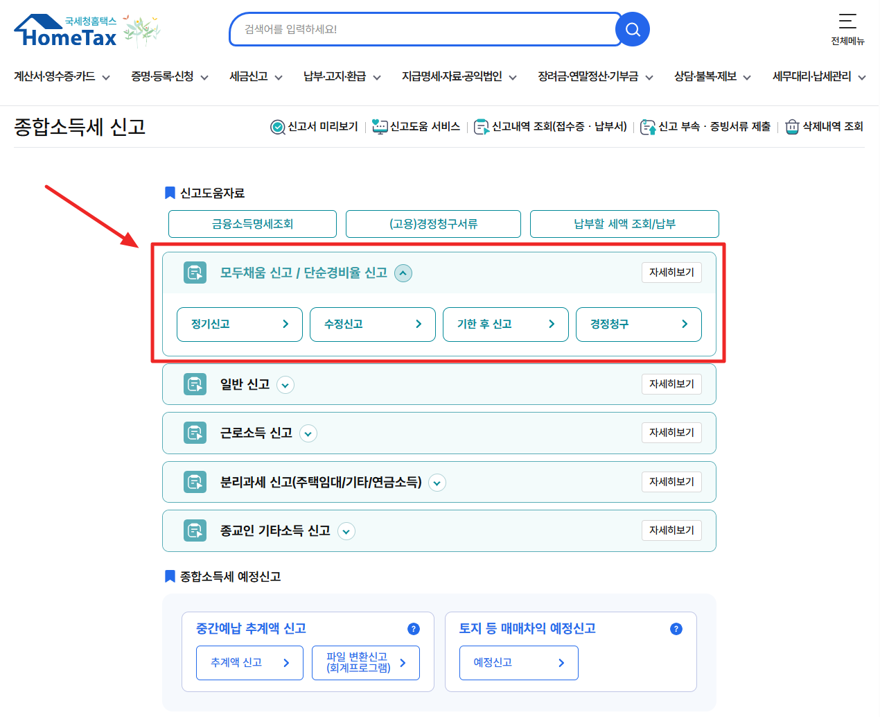 - ‘종합소득세 신고’ 메뉴 선택