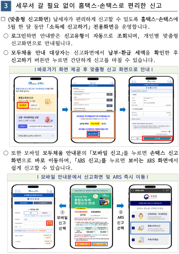 - 신고 경로: 홈택스, 손택스, ARS, 세무서 직접 방문