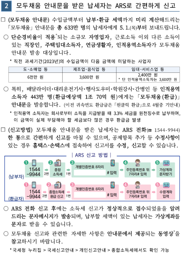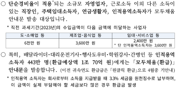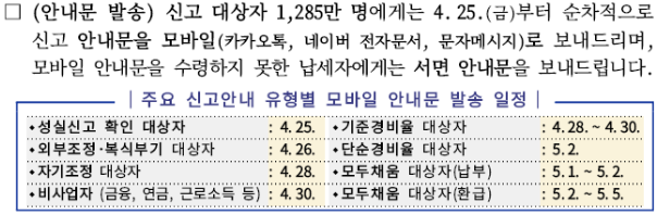 - 대상자에게는 국세청이 안내문을 발송