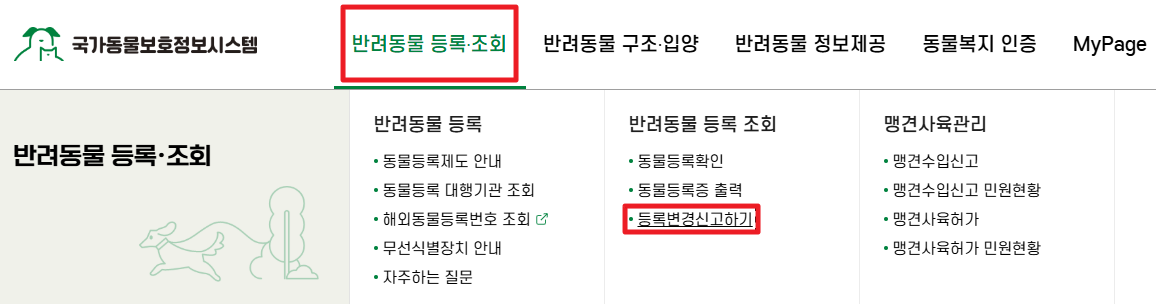 - 온라인: 국가동물보호정보시스템에서 변경 신고 가능