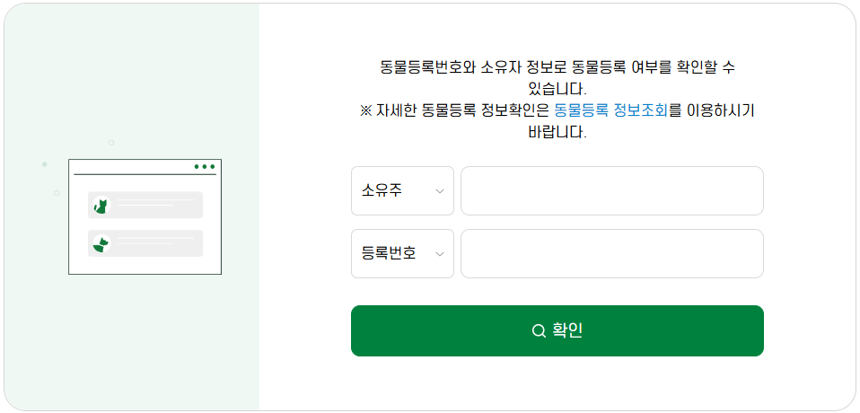 반려견의 등록번호는 국가동물보호정보시스템에서 조회할 수 있습니다.